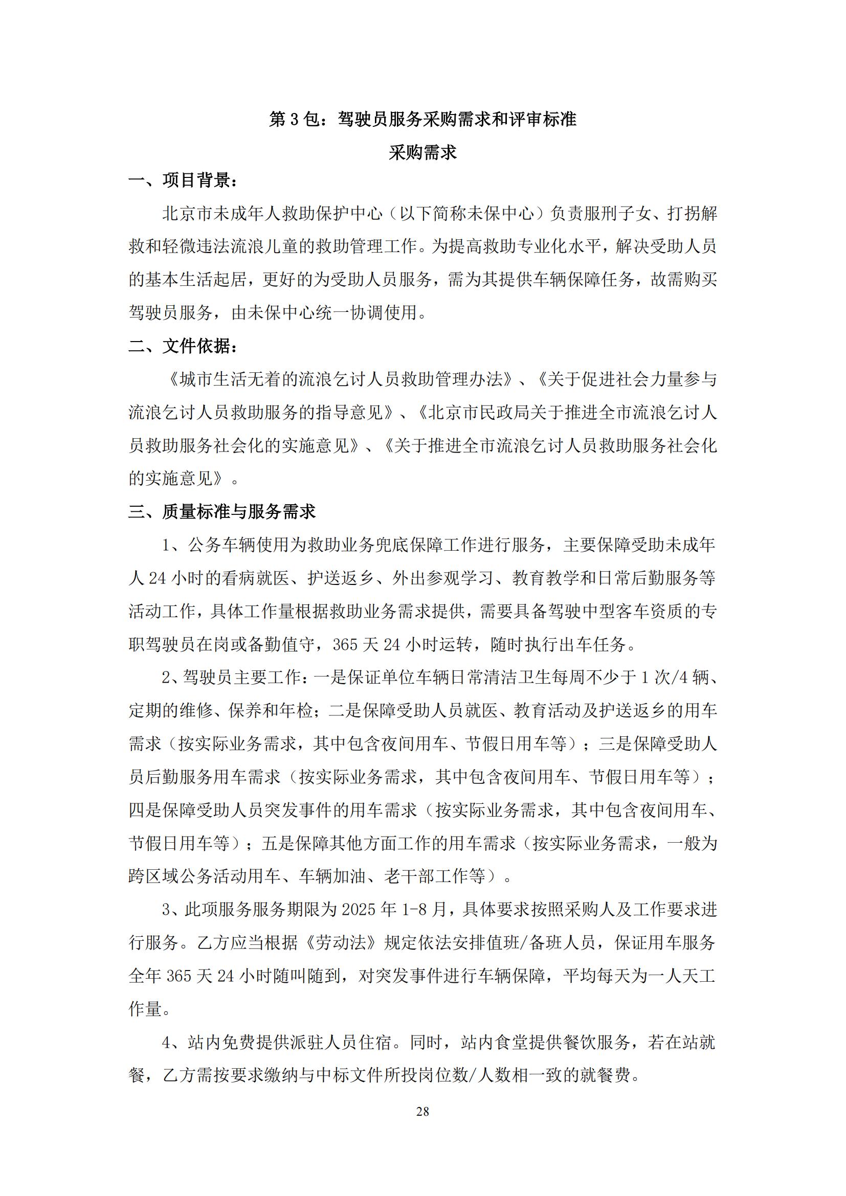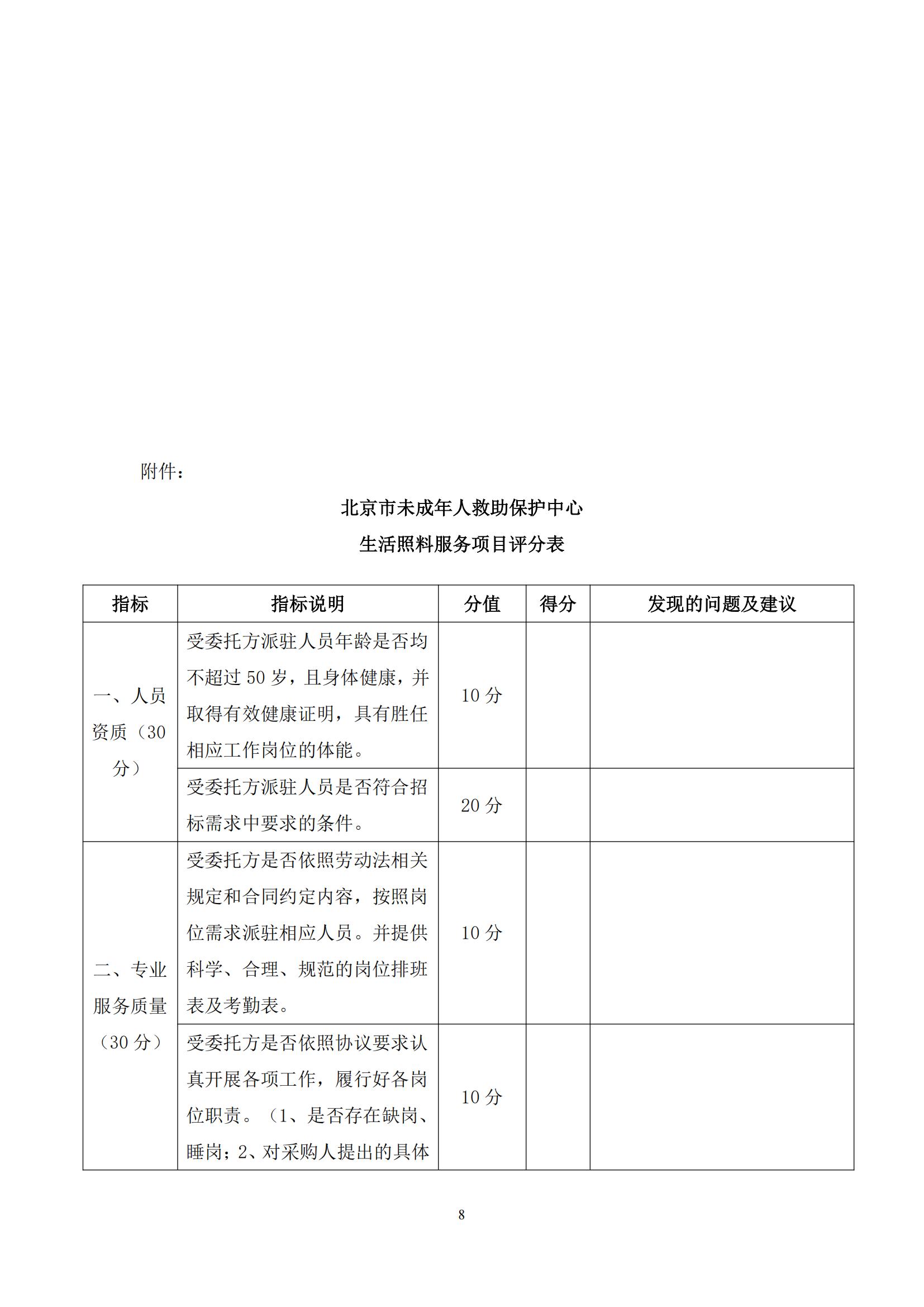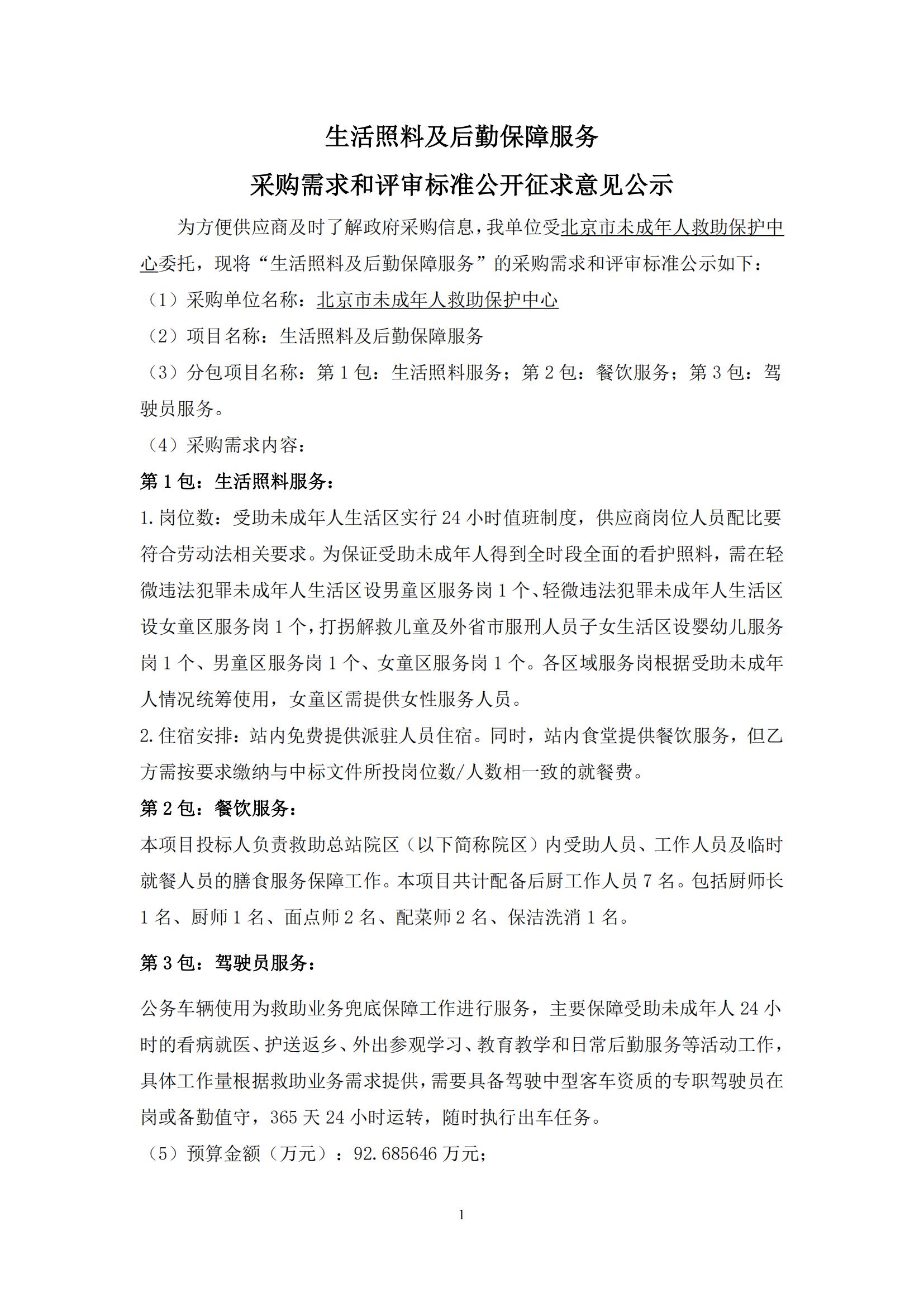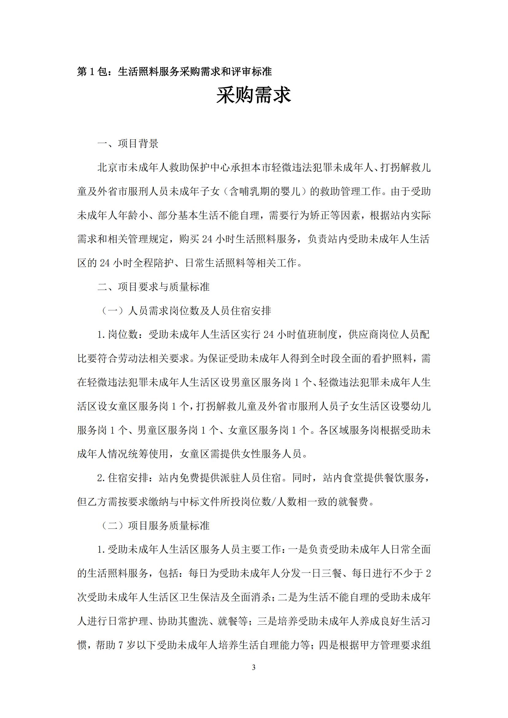 采購需求和評審標準公示版——北京市未成年人救助保護中心生活照料及后勤保障服務