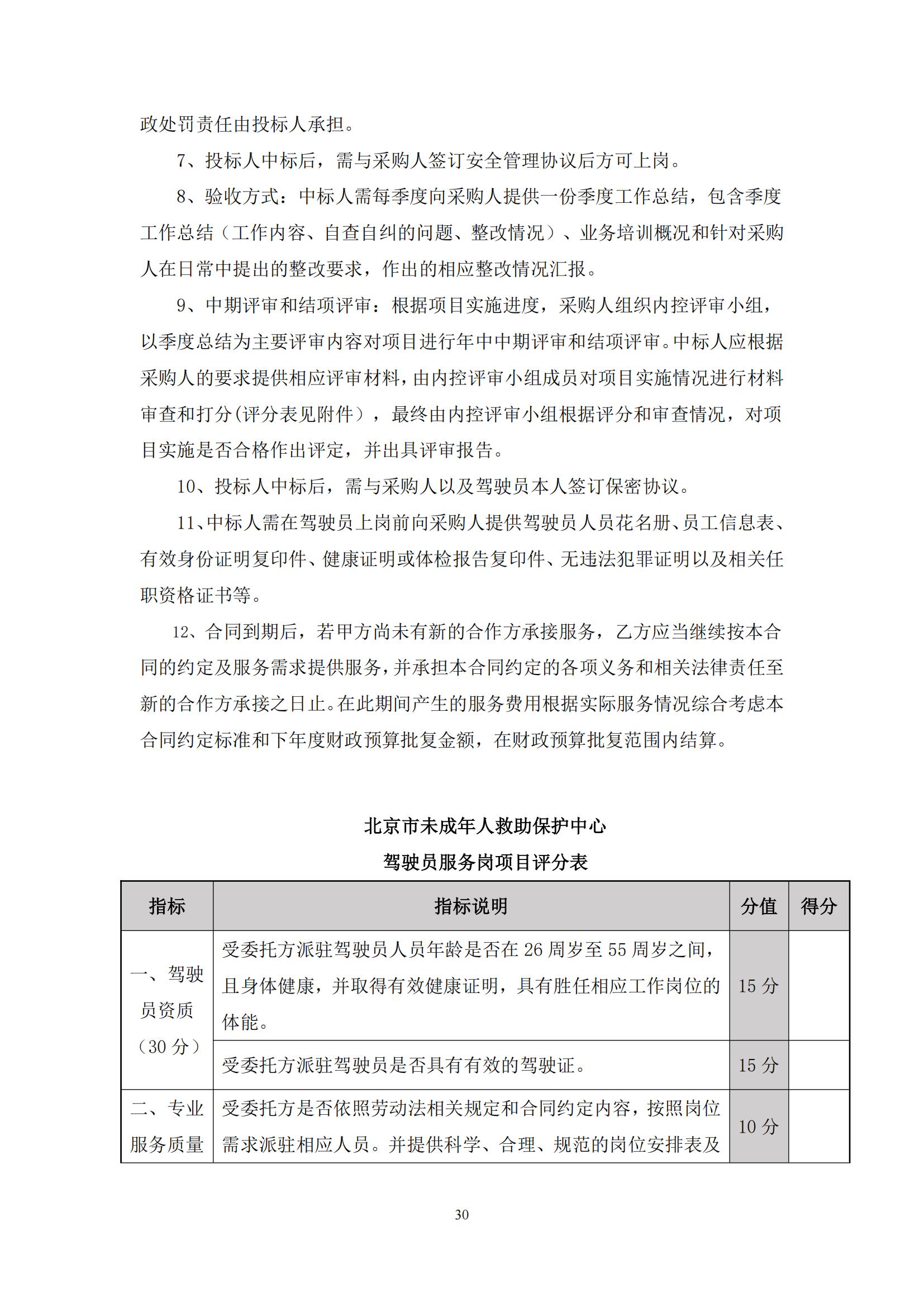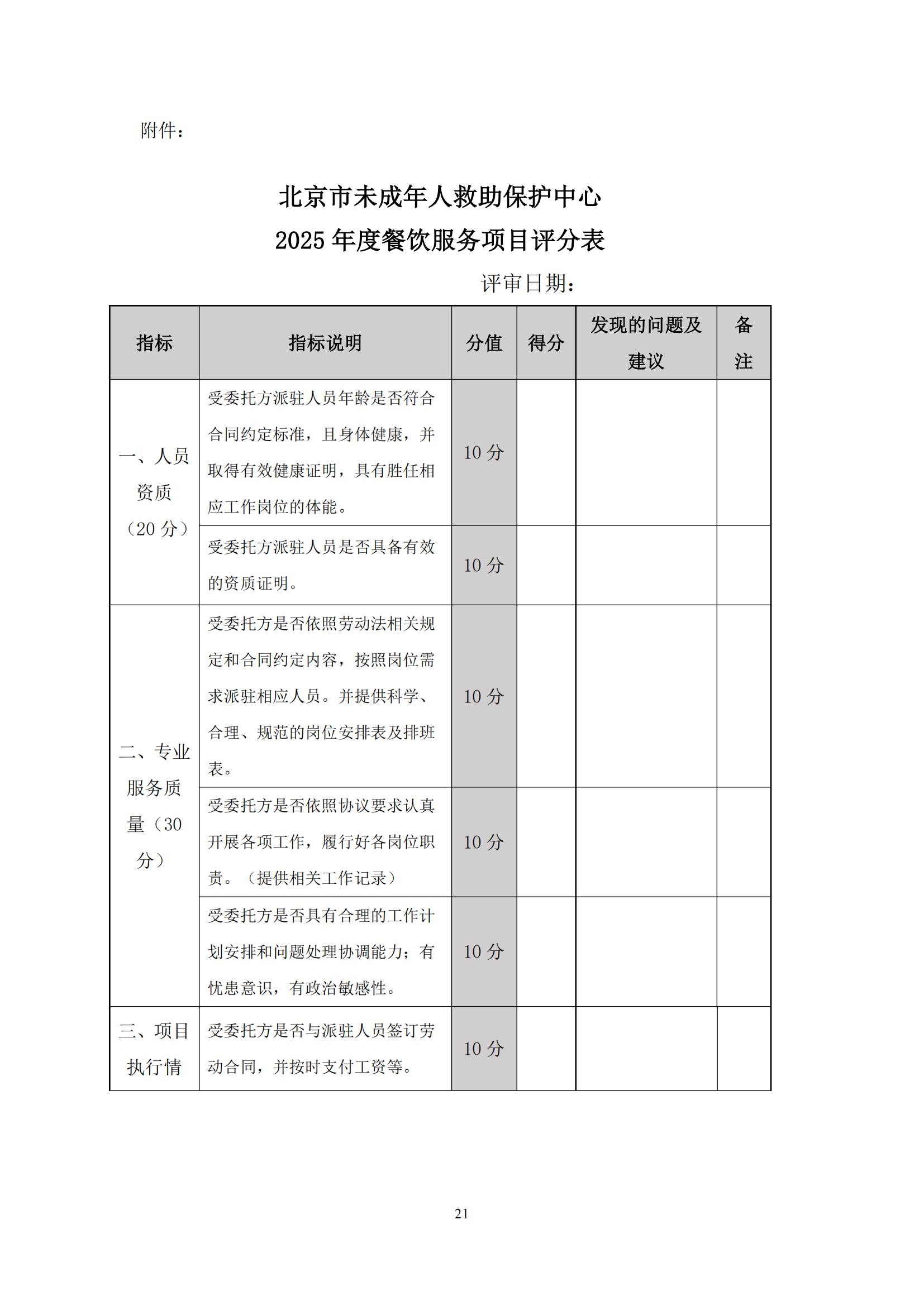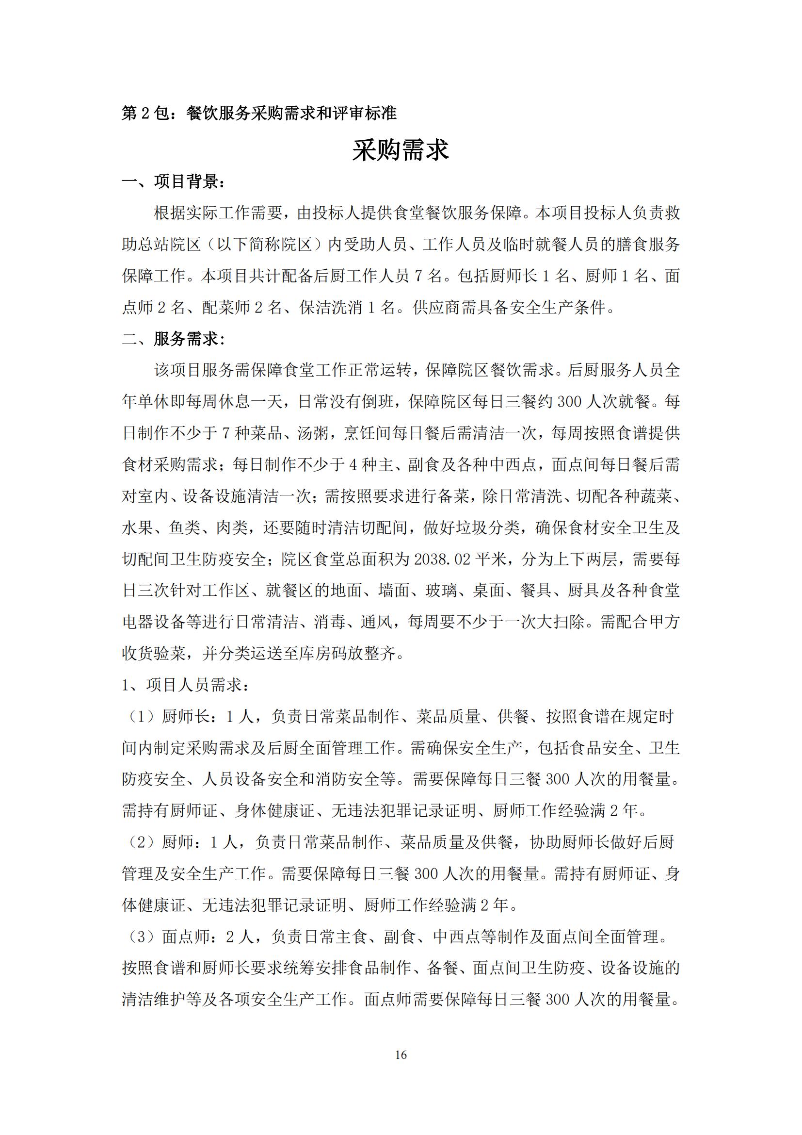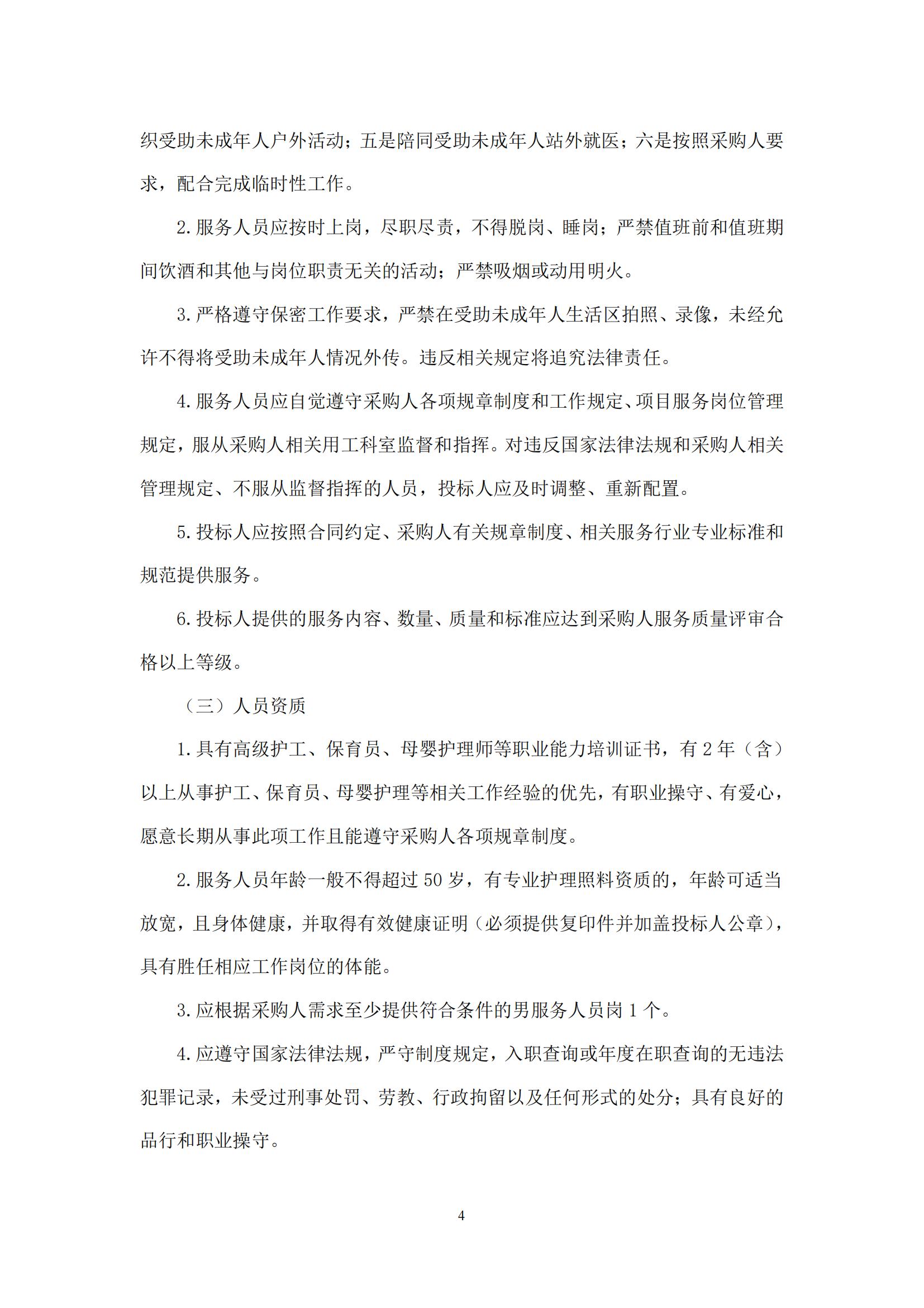 采購需求和評審標準公示版——北京市未成年人救助保護中心生活照料及后勤保障服務