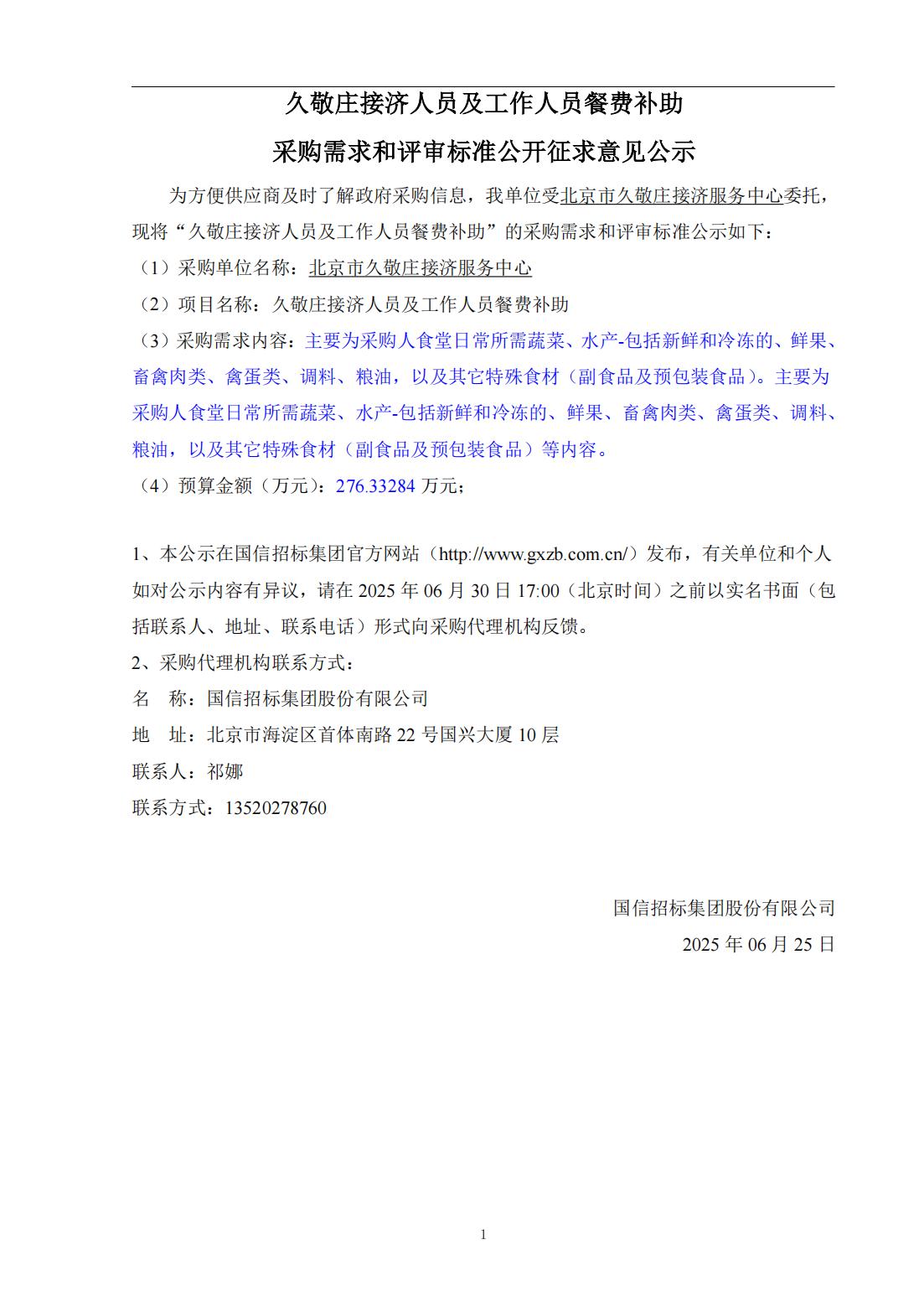 采購(gòu)需求和評(píng)審標(biāo)準(zhǔn)公示版——久敬莊接濟(jì)保障社會(huì)化服務(wù)